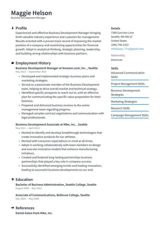 Business Development Manager CV Template